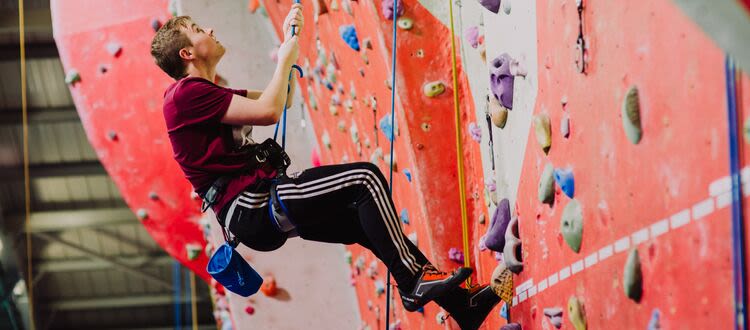 Our climbing wall has over 40 metres of dedicated climbing surface, including bouldering and lead walls with over 150 climbing routes.